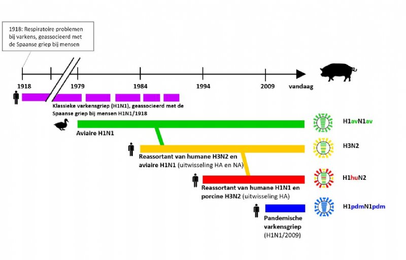 De laatste decennia is er een aantal grieptypes van belang bij varkens. Deze types zijn gelukkig redelijk stabiel gebleken. Nadat er in de jaren zeventig en tachtig H1N1 (van watervogels) en H3N2 (van mensen) rondging bij varkens, is daar in het begin van deze eeuw nog H1N2 – herschikking van grieptypes van mensen en varkens – bij gekomen. Daarna was het een aantal jaren rustig aan het front.
