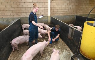 De studenten kijken naar mogelijke verschijnselen van Sins aan de oren, speentjes en staart, legt Vogelzang uit. 'Dat doen ze bij complete tomen en ze leggen de resultaten individueel vast. De studenten volgen de biggen hun hele leven tot aan het afleveren van de fokgelten aan toe. En ze leggen van ieder individueel dier vast of ze wel of geen beschadigingen hebben.'